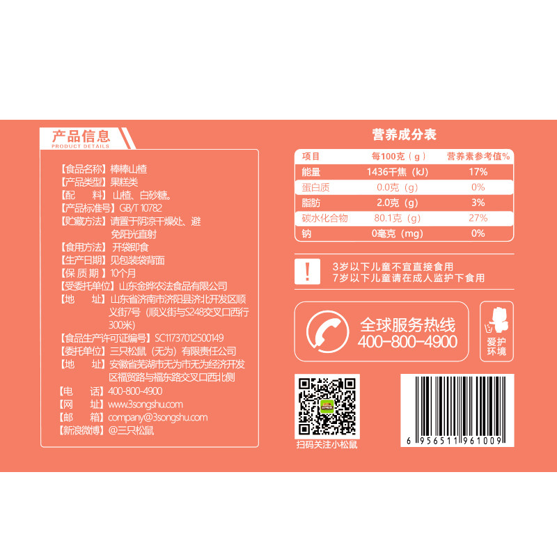 ten billion subsidy _ (three squirrels _ sticks of hawthorn 108gx3 bag) online red casual children snack snack