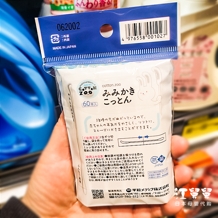 Japan Peace cotton swab baby elbow newborn cleaning Cotton ball stick baby ear hole cleaning Independent packaging 60 pcs