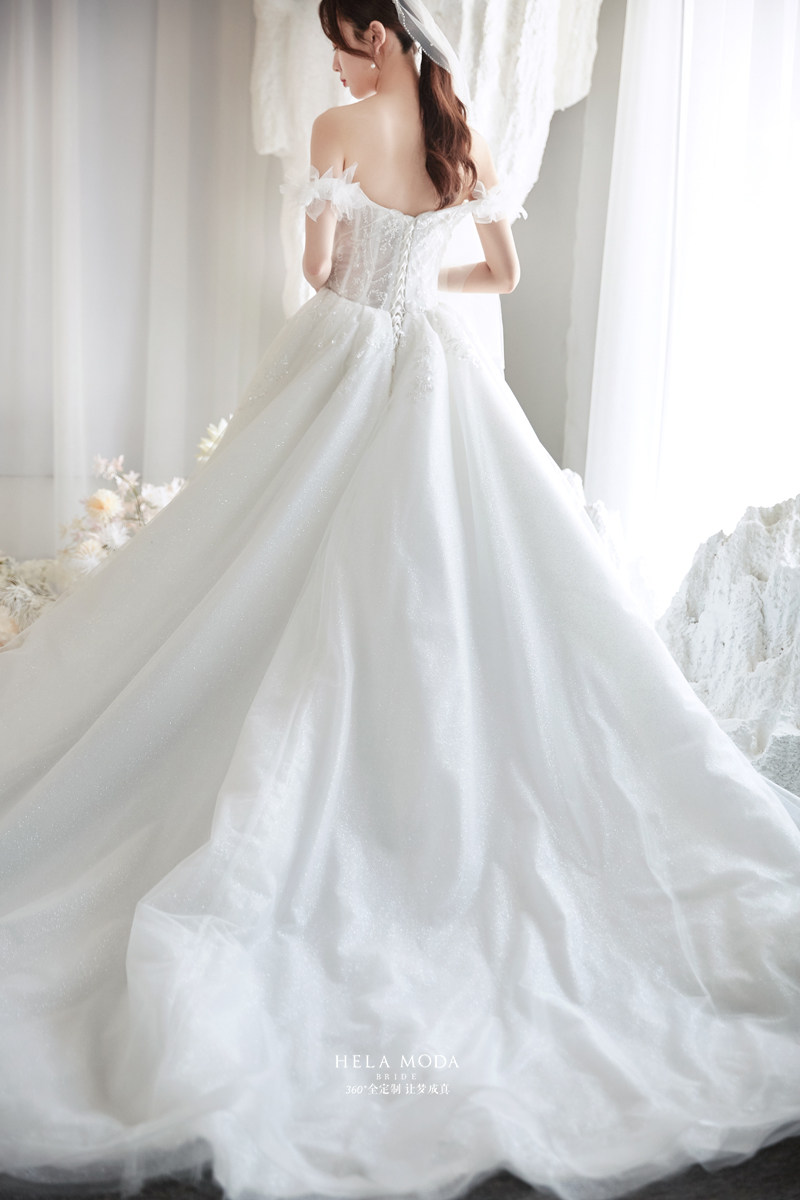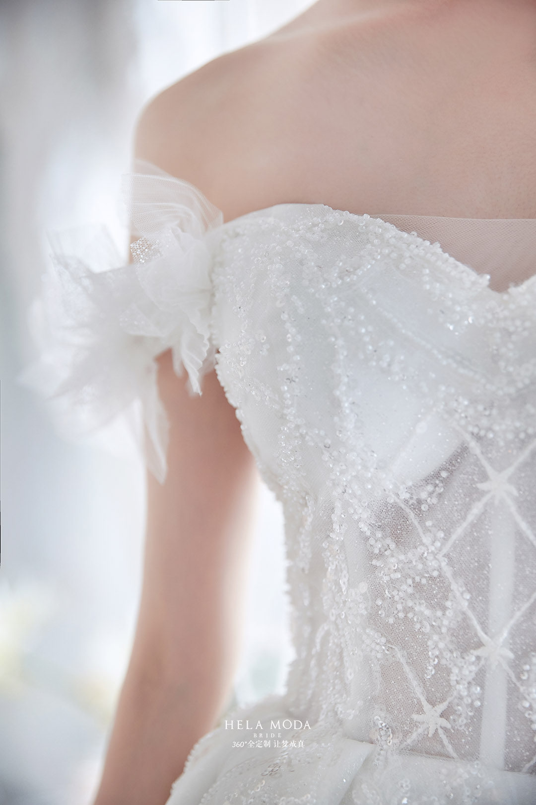 Hera customized 2022 new heavy industry one-shoulder temperament French style simple texture starry sky long trailing main wedding dress