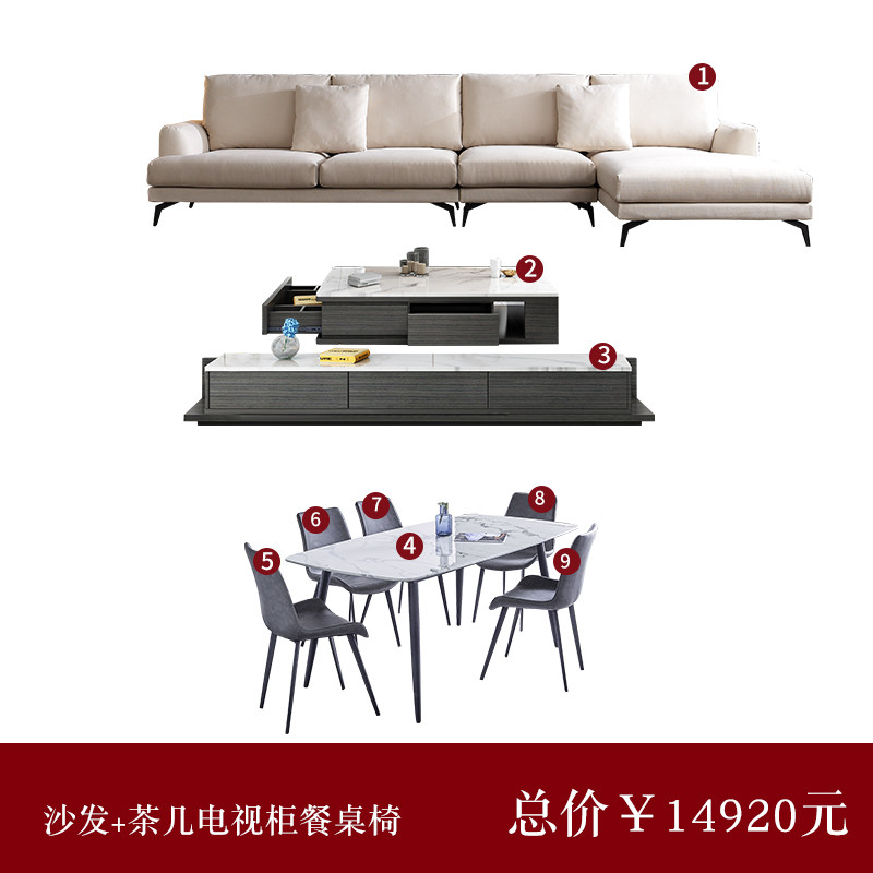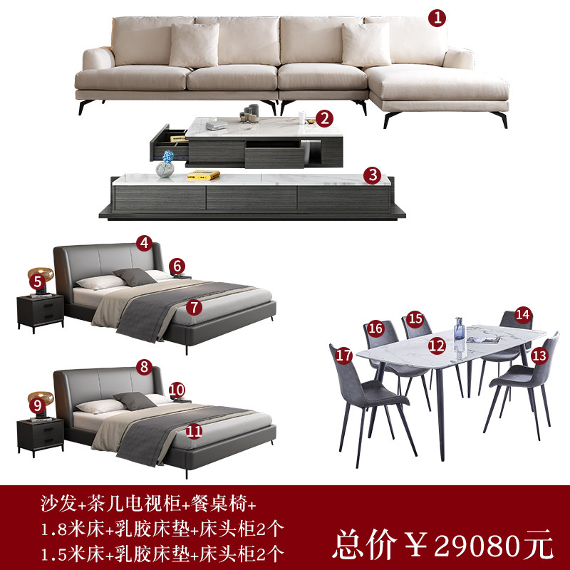 Shu Chun full set furniture living room bedroom sofa coffee table TV cabinet combination dining table chairs leather whole house package