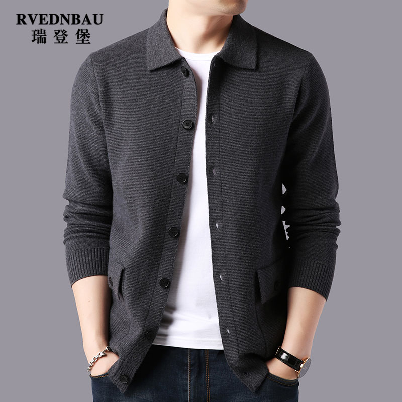 Spring and autumn jacket men's thick cardigan Korean version of the trend loose men's lapel knitwear sweater men's outer wear sanitary clothing