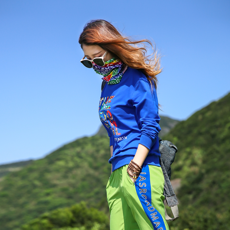 Outdoor cotton long-sleeved T-shirt sweater women's top Travel mountaineering hiking round neck pullover Tide brand loose pullover