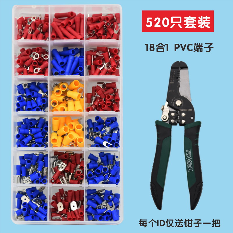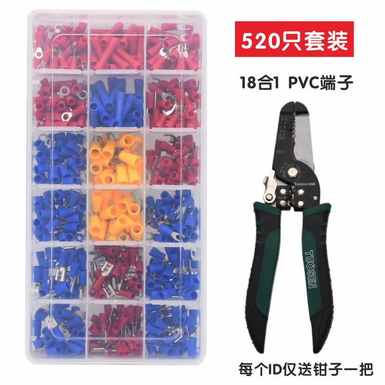520pcs cold-pressed terminal insulation Y-type U-type o-type butt-opening nose copper terminal wire