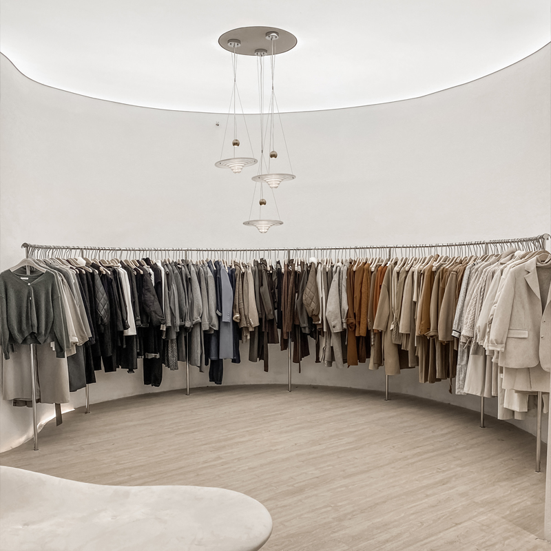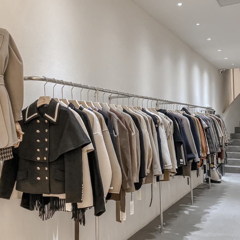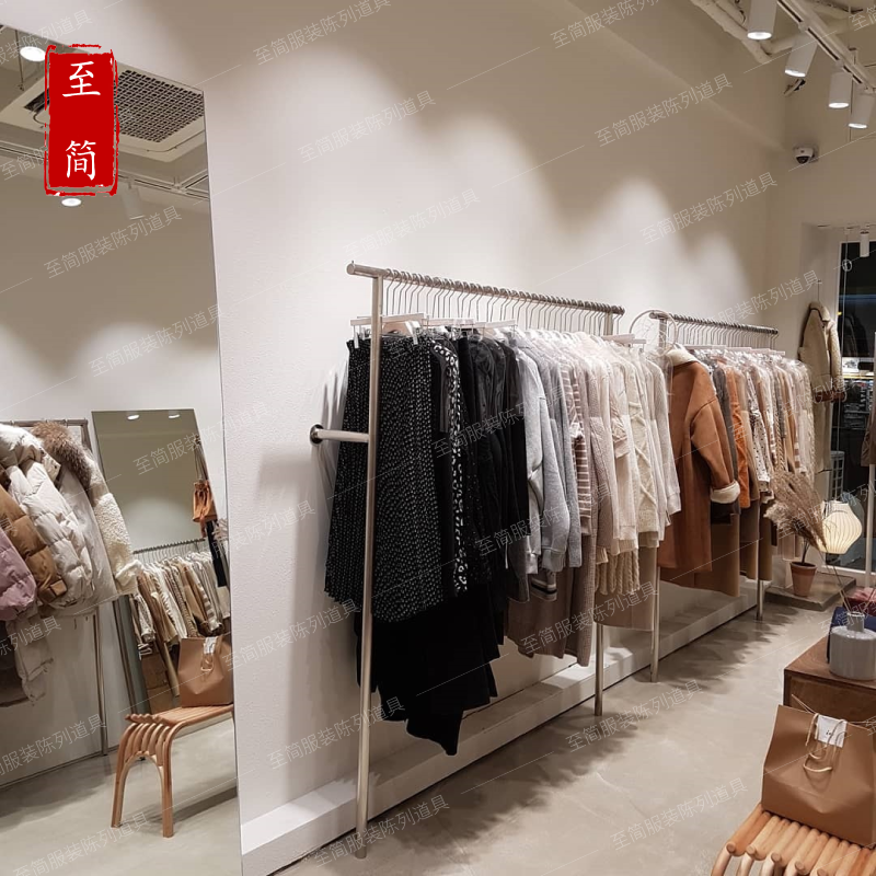 Clothing store display rack women's clothing on the wall floor-to-ceiling shelf props hanging clothes rail display rack stainless steel clothes rack
