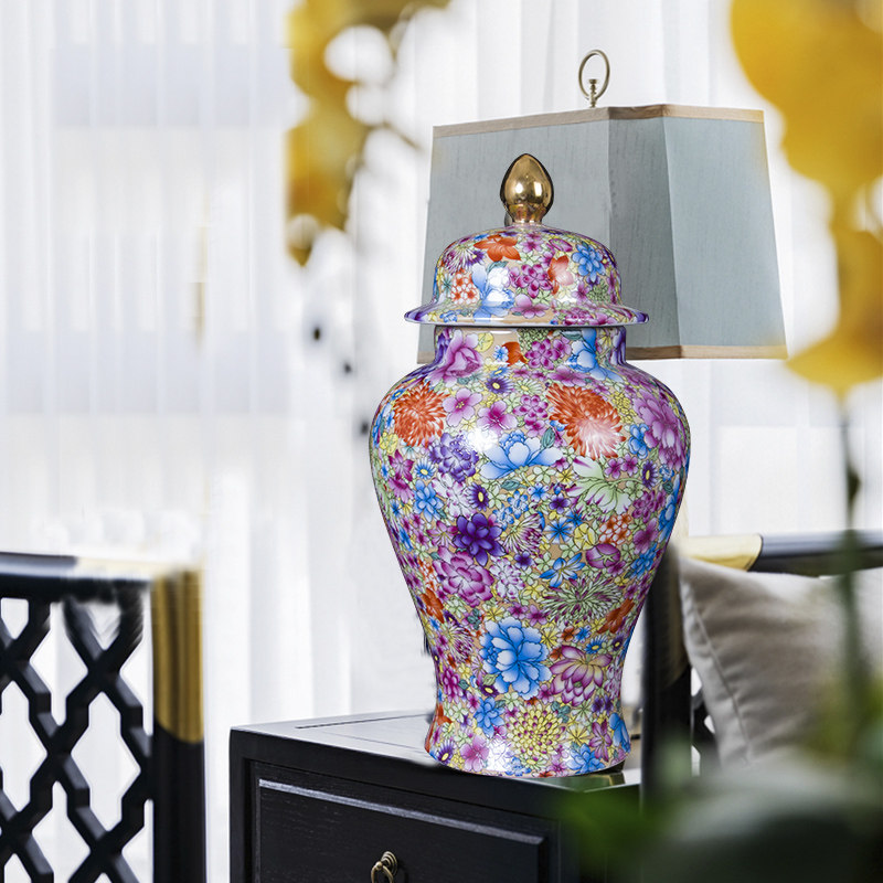 Jingdezhen ceramic ware enamel colorful Wanhua General pot Ming and Qing Classic Chinese imitation antique living room bookcase swing piece