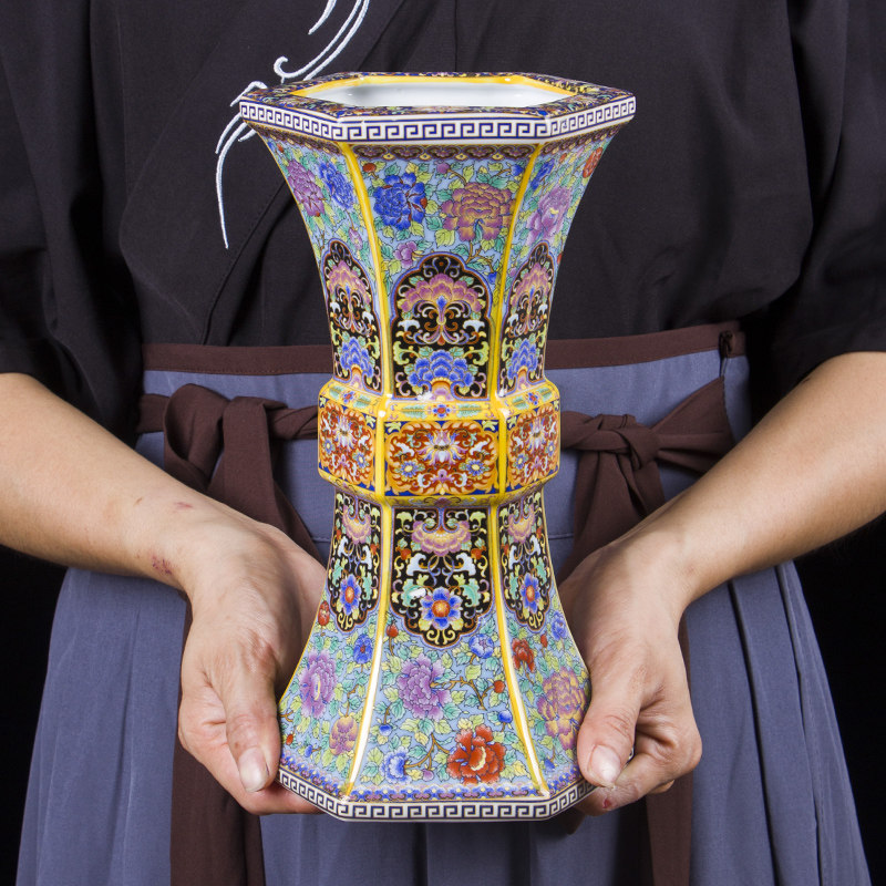 Jingdezhen Ceramics Enamel Flower Chase Mini Vase Anti - Ming - Clear Living Room Decoration Process Gift Decoration