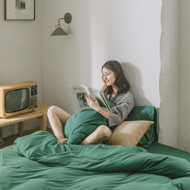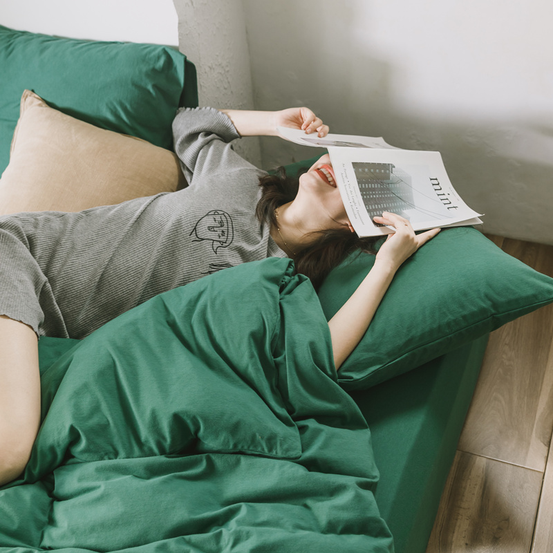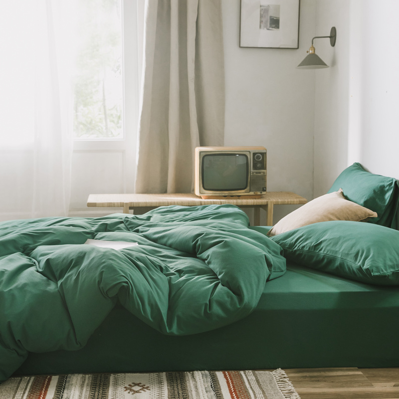 Nordic simple solid color cotton knitted cotton four-piece set Cotton Tianzhu cotton Naked sleeping quilt bed Single bed Li bed product