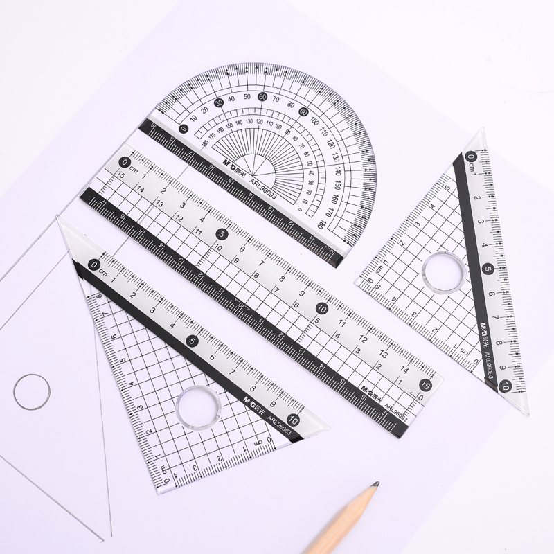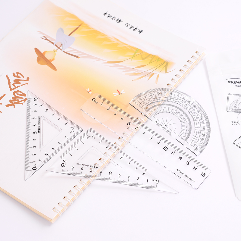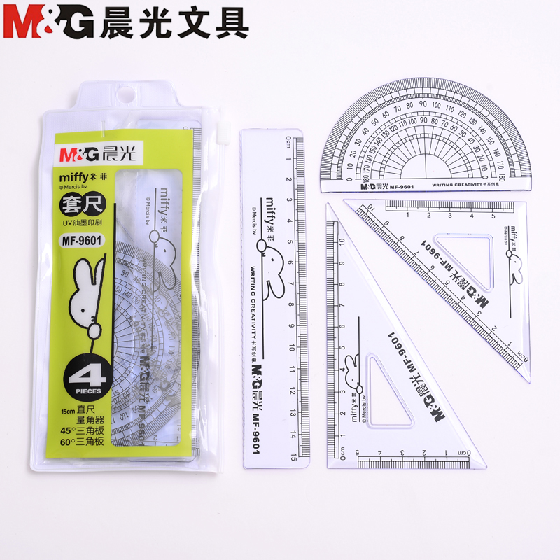 Morning light stationery cover ruler Drawing four sets of primary and middle school students Plastic triangular plate Protractor examination ruler suit Japan-ROK simple cartoon children 1st grade multifunction coated drawing ruler