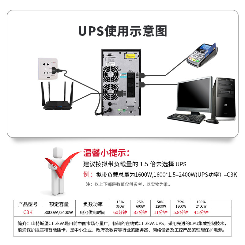 Mountain Tups uninterrupted power supply C3K Online style built-in battery room standby power supply voltage stabilized 3KVA2400W