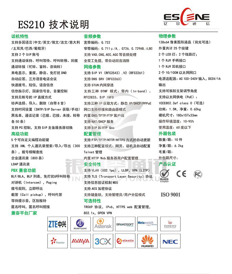 ESCENE ES210 two-line business office intelligent dual network port IP telephone SIP switchboard Entry-level