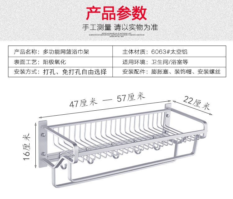 Single rod net basket towel rack 47cm(punch) Single rod net basket towel rack 57cm(punch) Single rod plate blue towel frame(punch) Twin pole net basket towel rack 47cm(