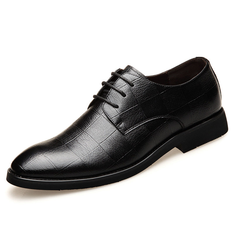 Formal men's leather shoes men's pointed toe black men's shoes British business leather youth heightening casual shoes breathable soft