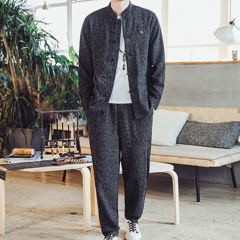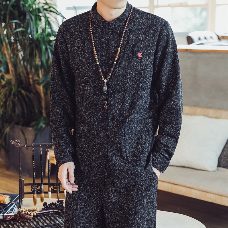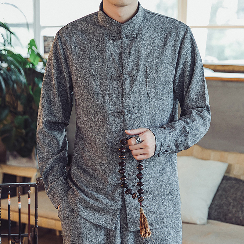 Chinese style Tang dress shirt Men's linen suit Spring and Autumn meditation shirt coat plate buckle ancient style thin section linen lay