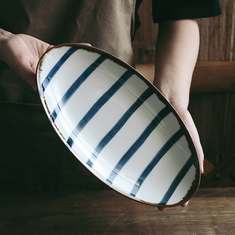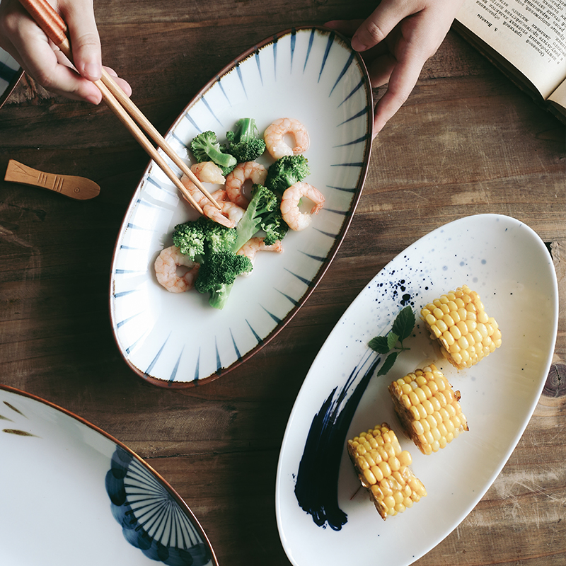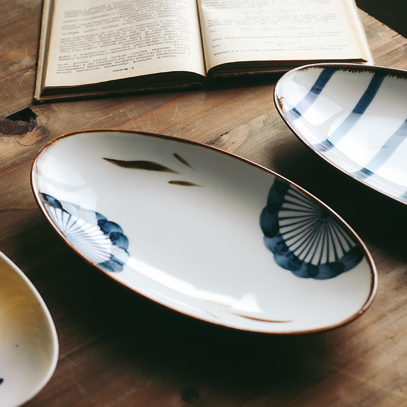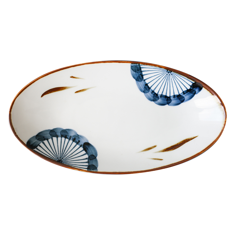 Japanese-style dining room Japanese style hand-painted underglaze ceramic sushi plate oval plate dumpling plate Japanese fried fish plate