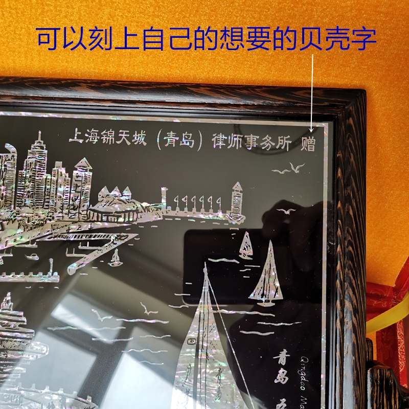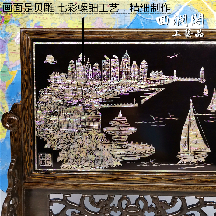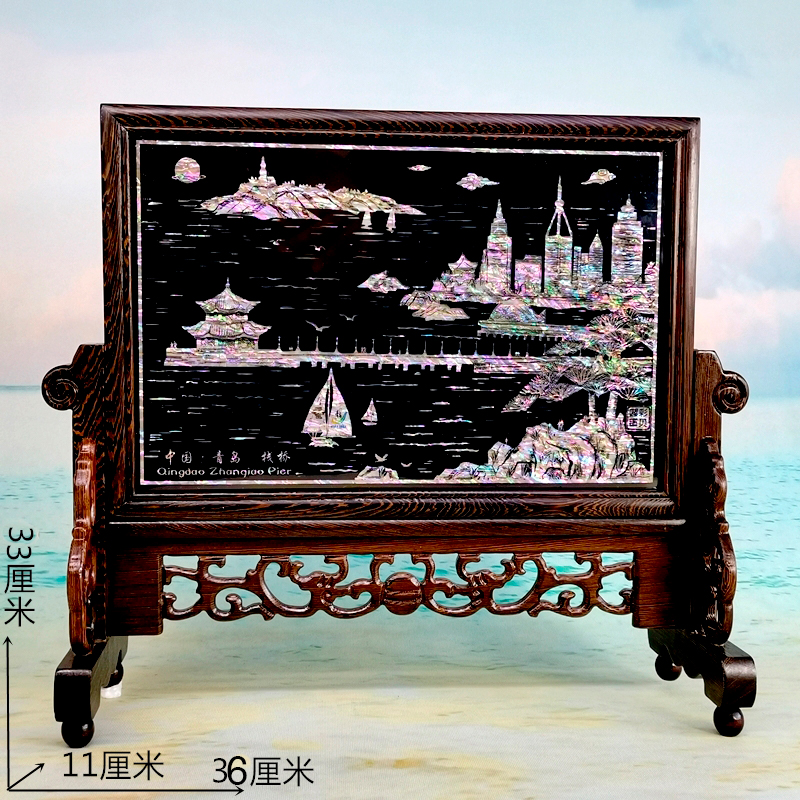 Customized Qingdao characteristic commemorative gift shell carving mother-of-pearl screen shell crafts decoration chicken wing wooden table screen desktop