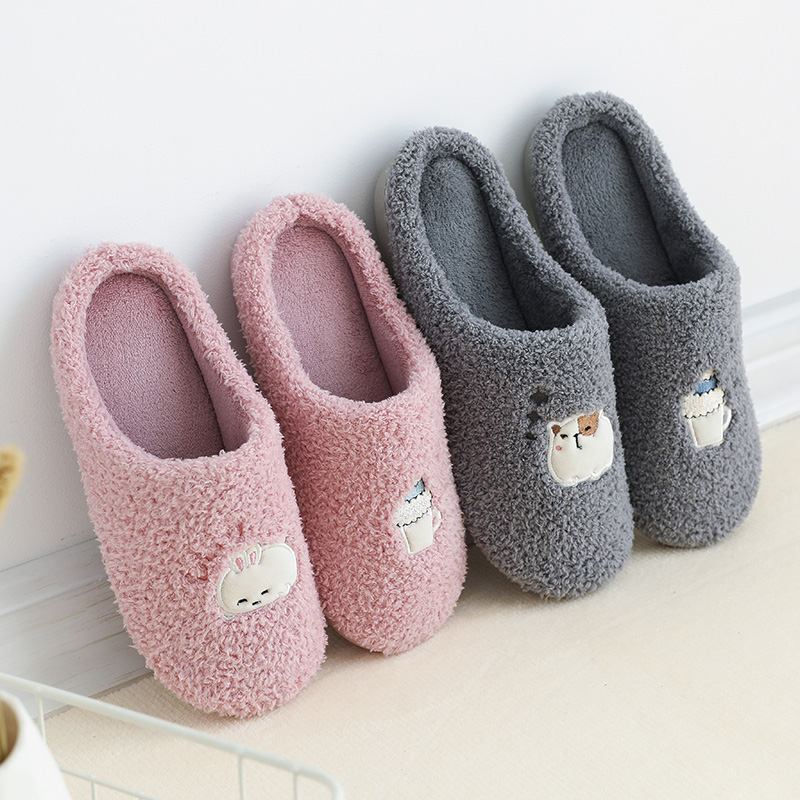 Couple cotton slippers women winter indoor non-slip home use men's floor slippers furry cute cartoon confinement warm