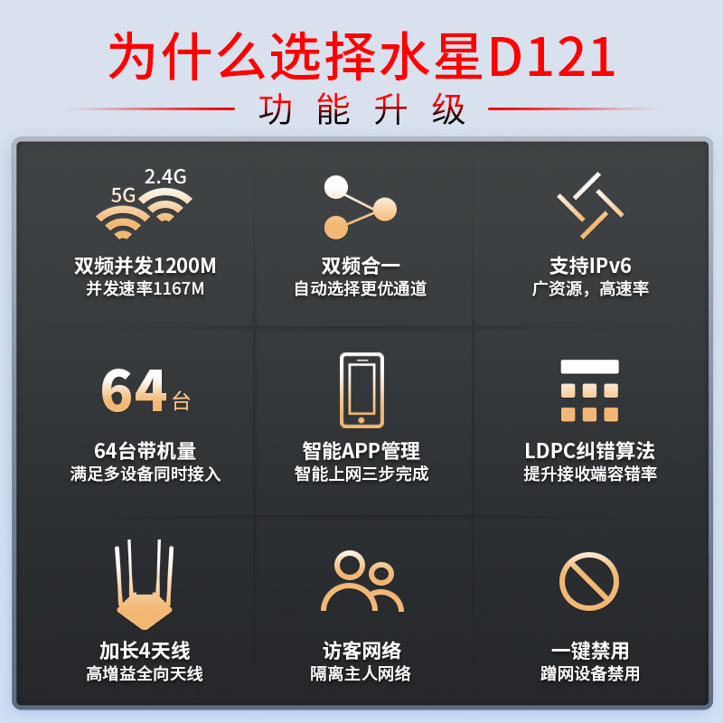 (Send Network cable) mercury Router Wireless home Gigabit rate high speed wifi through the wall King mercury Dual Frequency 5G 100 megabytes Port dormitory student dormitory Telecom mobile D121