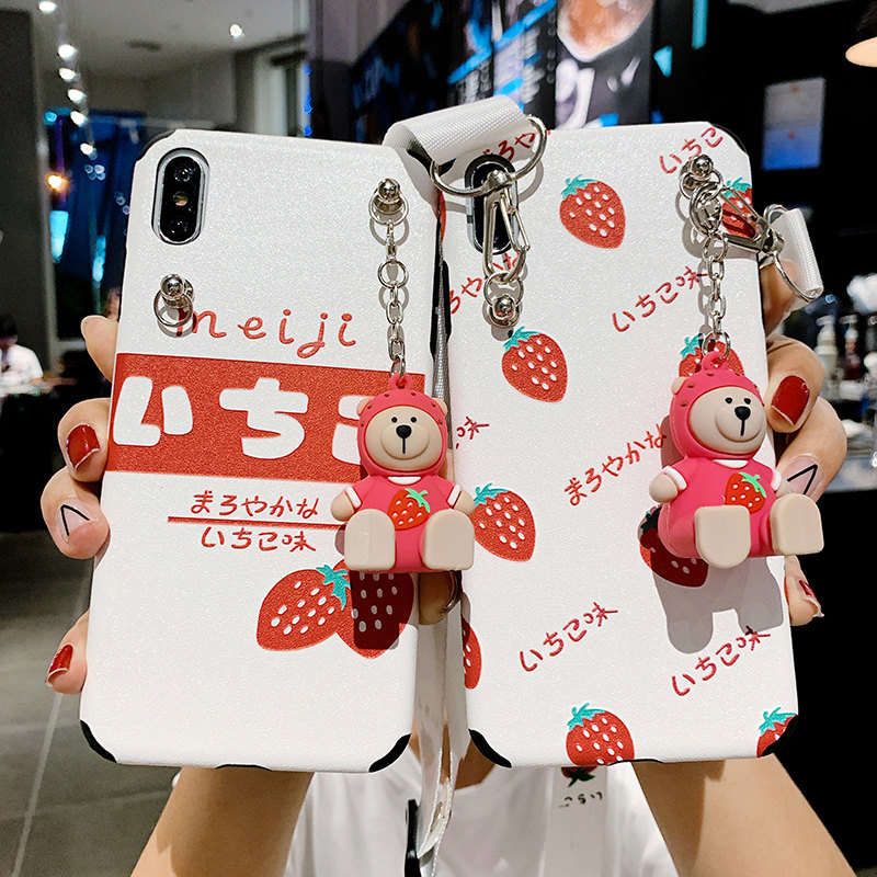 Can back can cross fashion Strawberry silk embossed mobile phone Protective case