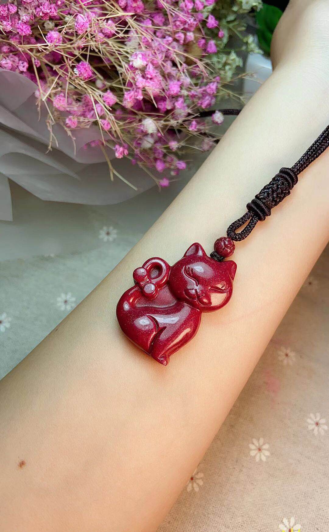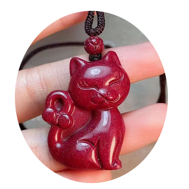 Raw ore natural cinnabar fashion style purple gold sand kitten pendant pendant necklace portable pendant