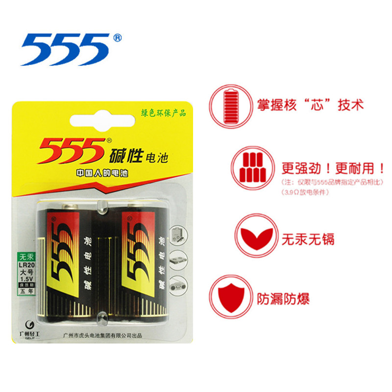 555 Card 1 Number of batteries 2 Grain Size 1 alkalis LR20 Large size size D Type 1 5V flashlight Flashlight Recorder dry battery