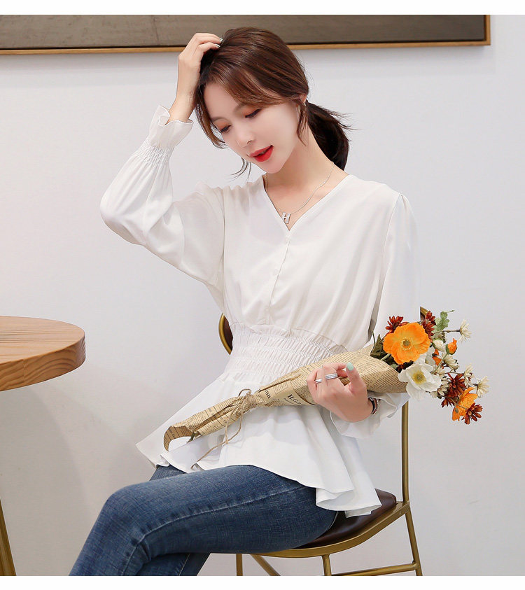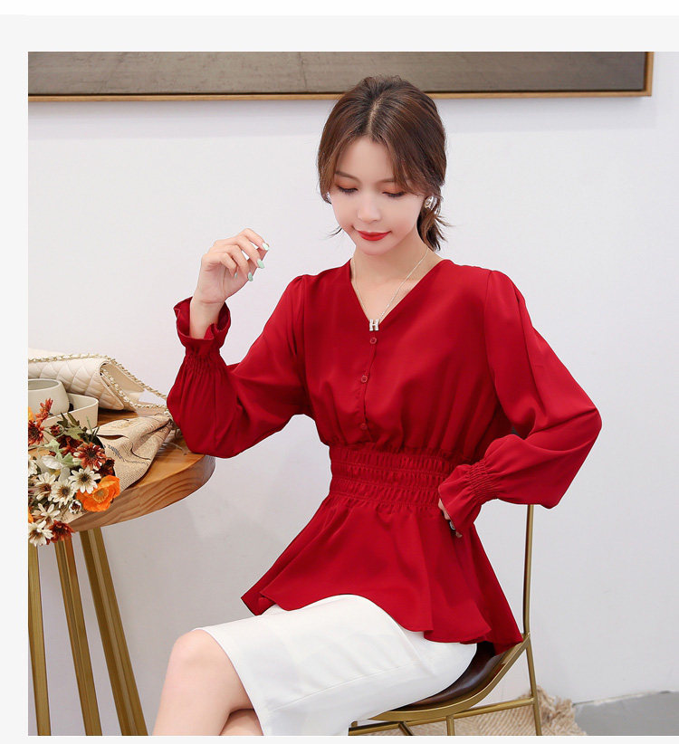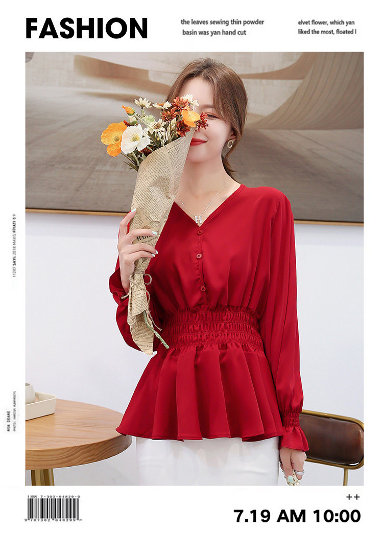 Chic Shirt Woman V-collar Red Skirt Skirt Closed in Spring and Autumn Costume