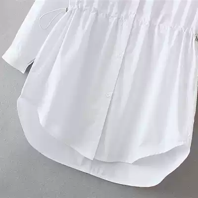 Large size women's clothing 2021 spring loose solid color waist thin cover belly fat mm medium and long version of shirt dress female