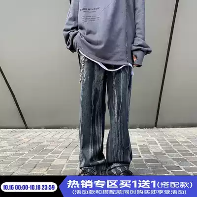 Leman Jinjun jeans men's trend retro drop loose pants ins embossed Tide brand men's spring father pants