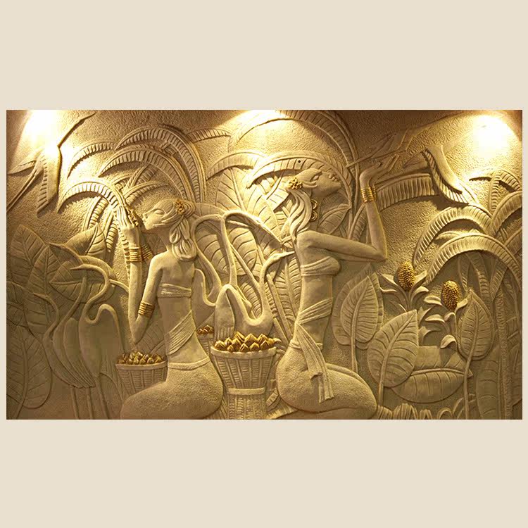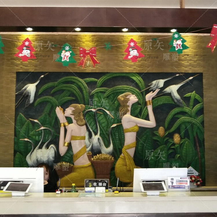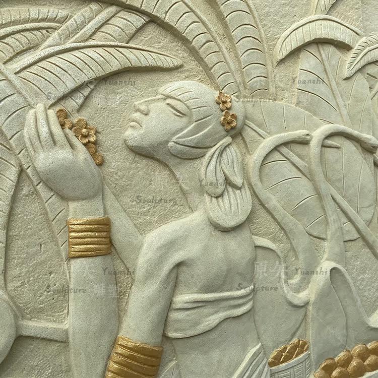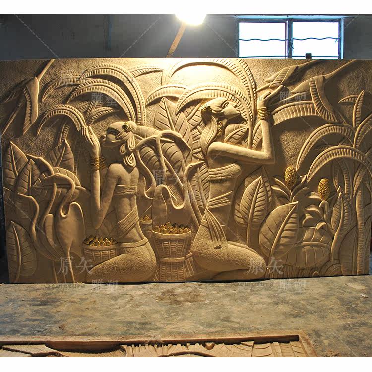 Sandstone Reliefs Custom Sand Rocks Southeast Asia Themed Hotel Spa Front Office Figures Fresco-Style Reliefs