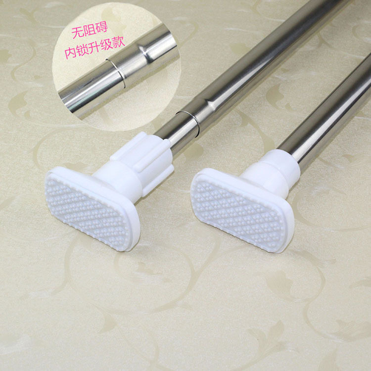 Free Punch Door Curtain Telescopic Rod Stainless Steel Window Curtain Rod Square Head Bath Curtain Rod Bedroom Living Room Kitchen Hanging Clothes Rod Thickening