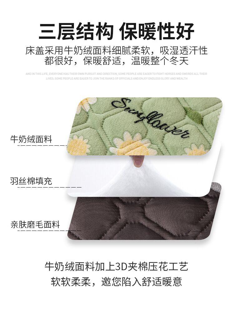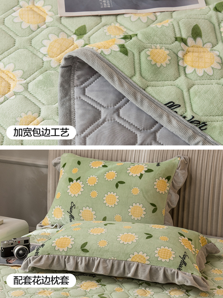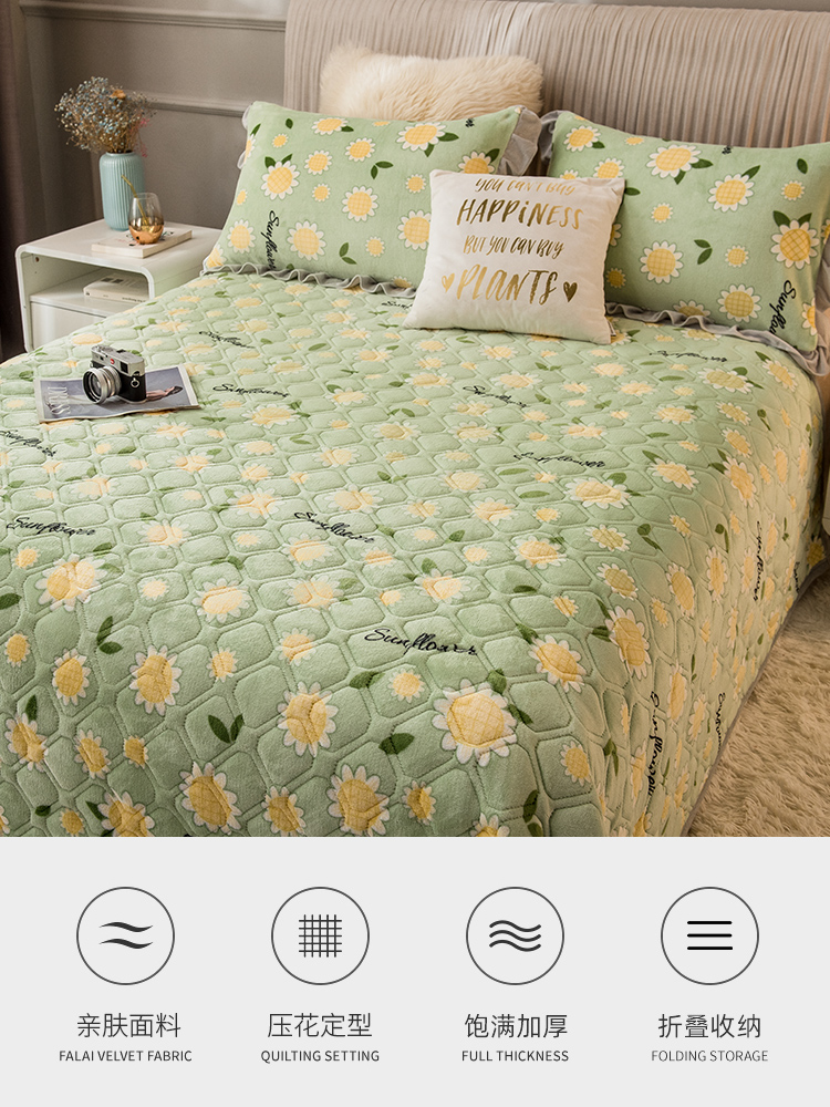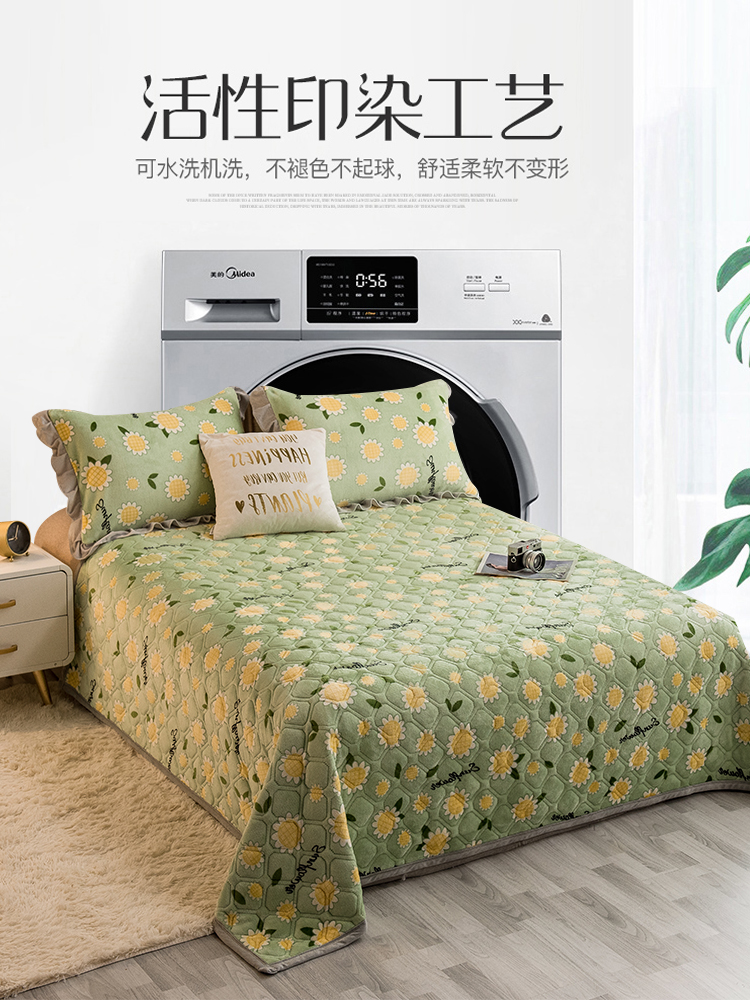 Milk velvet bed cover single-piece quilted bed sheet double-sided dual-use blanket tatami three-piece set crystal velvet big kang cover winter