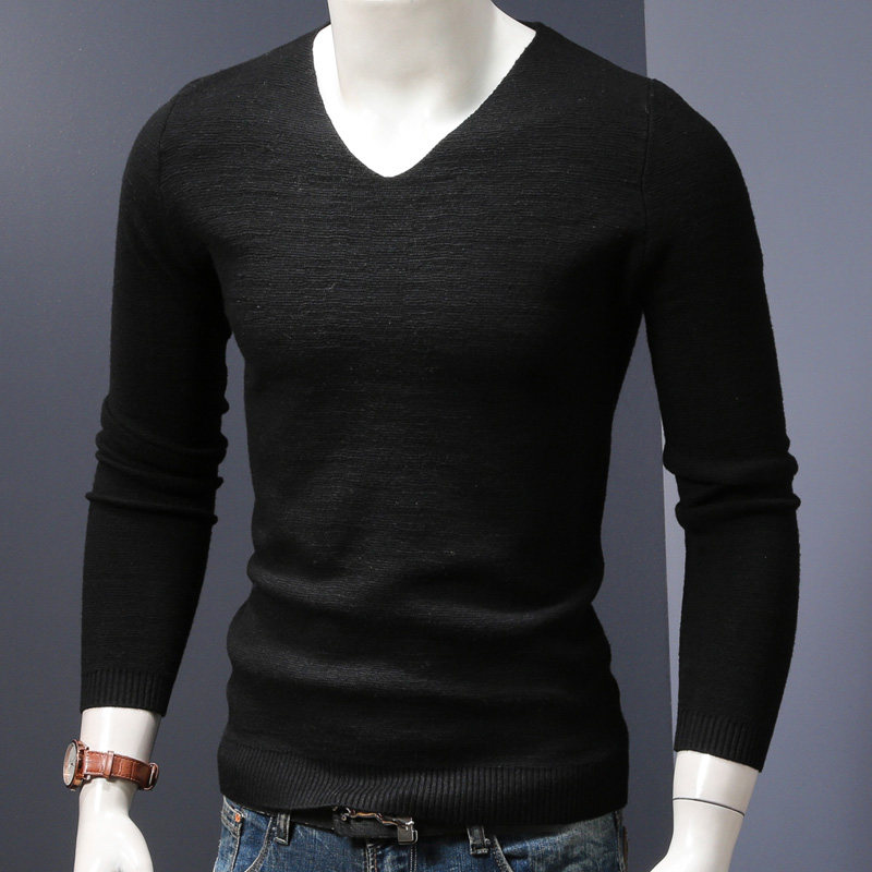 Autumn and winter sweater men's V-neck sweater men's solid color bottoming sweater long-sleeved top men's sanitary clothing trend