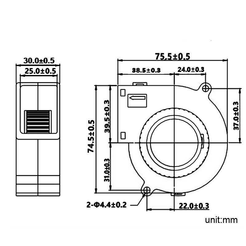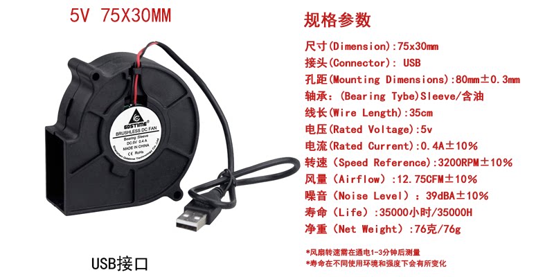 New DC 5v USB connector 7 5 cm 75mm 75mm 7530 turbo blower radiating fan
