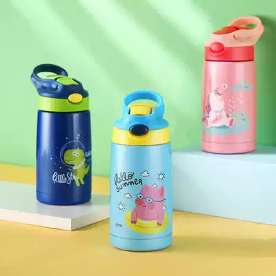 Cute cartoon thermos cup children portable with straw cover Primary School students kindergarten men and women small super cute water Cup