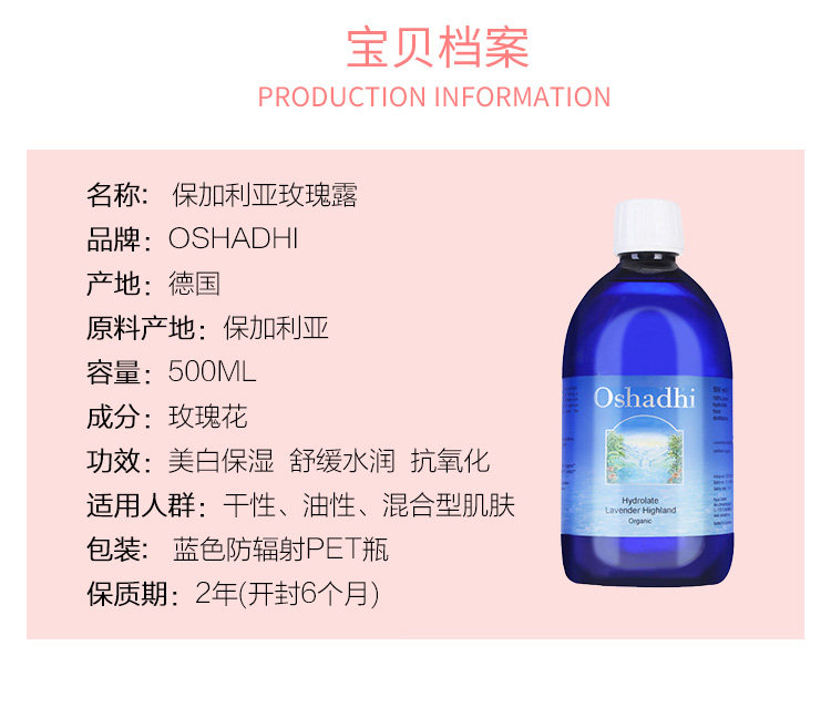 Spot Oshadhi Germany O home Bulgaria Damascus rose pure dew moisturizing toner 500ml