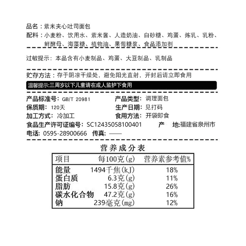 Hong Yi Purple Rice Bread Sandwich Pumpkin Toast Toast Breakfast Cake Nutritional Toast Snack Snack snack whole box 4 kilos