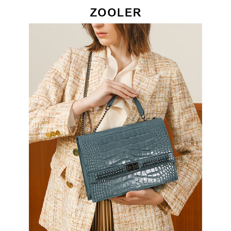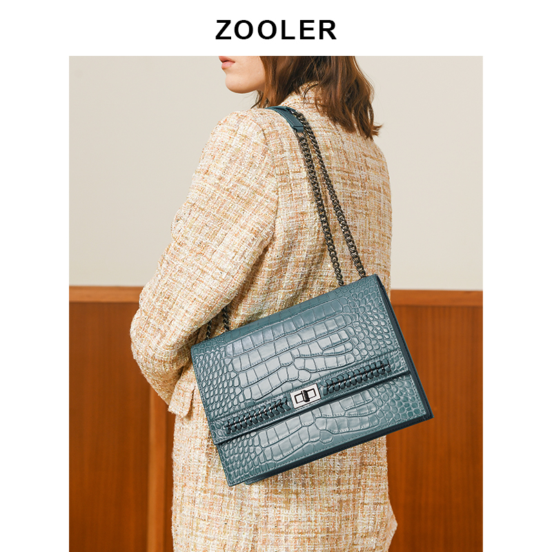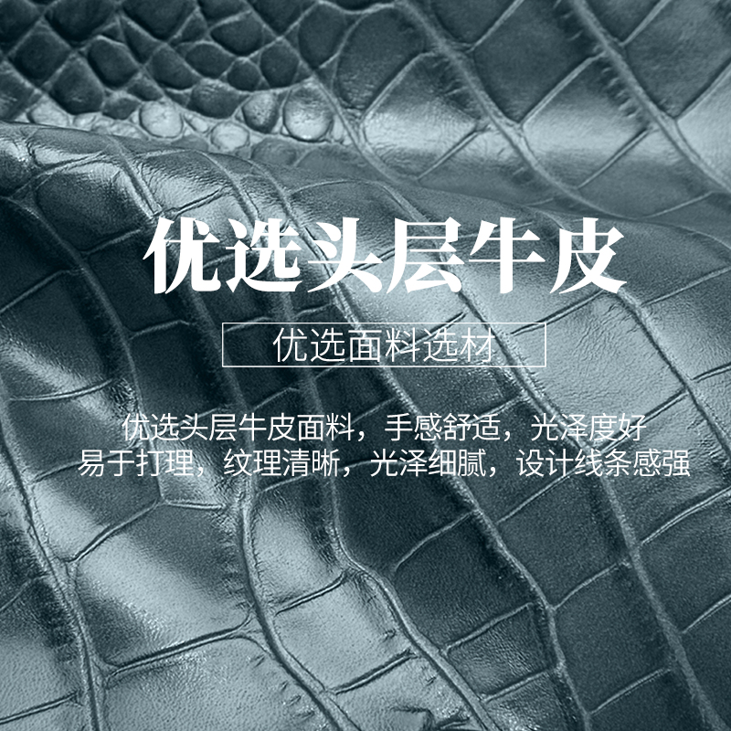 Jade blue elegant black texture first layer cowhide
