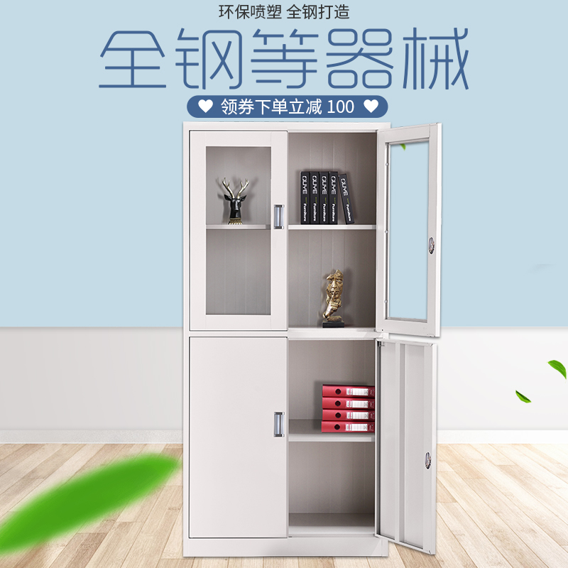 Upper glass lower iron and other instrumental cabinet office drawers with lock sheet metal locker information Archives Credential cabinet bookcase-Taobao