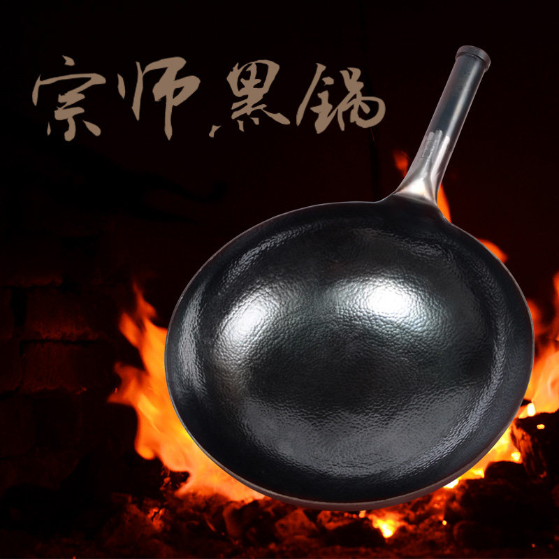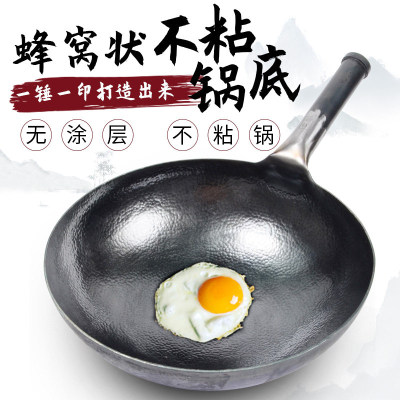 Yan blacksmith iron pan hand-forged hammer printed black pot old-fashioned household frying pan physical non-stick pan without coating