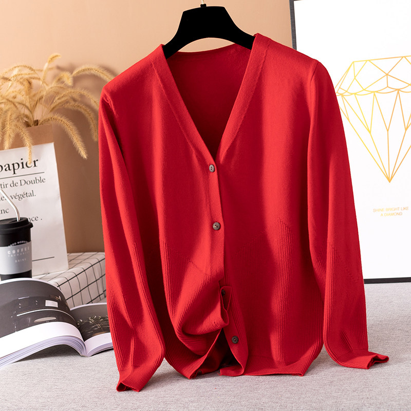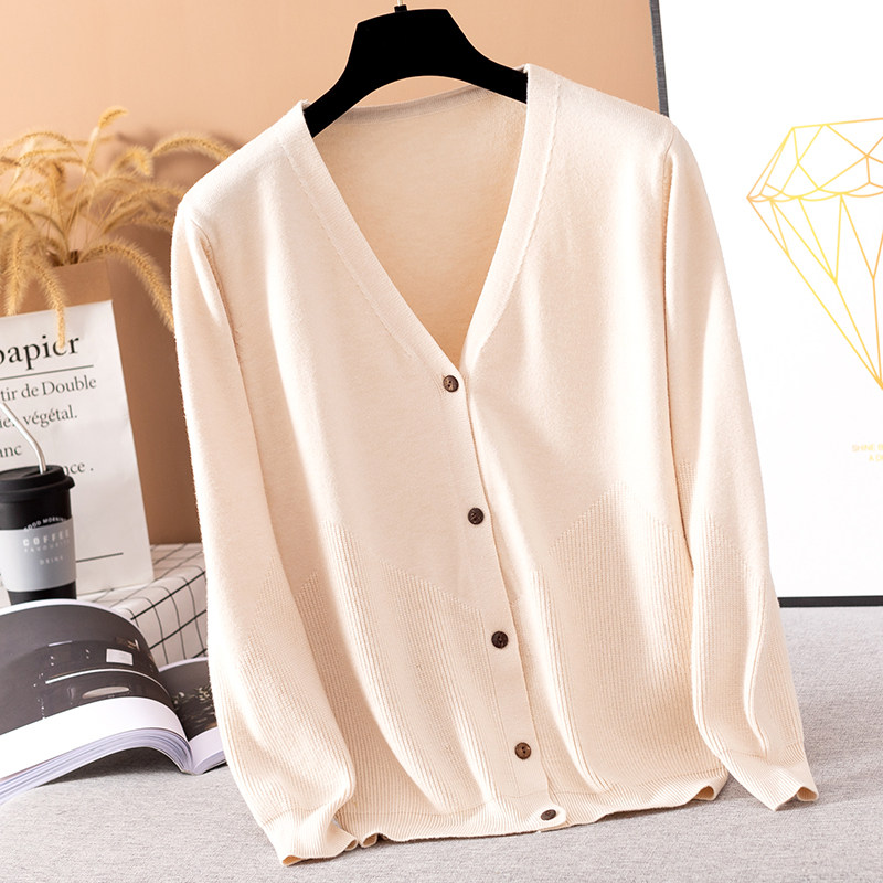 Early autumn coat women's knitted cardigan thin section all-match loose foreign style outer wear solid color shawl cashmere spring sweater women