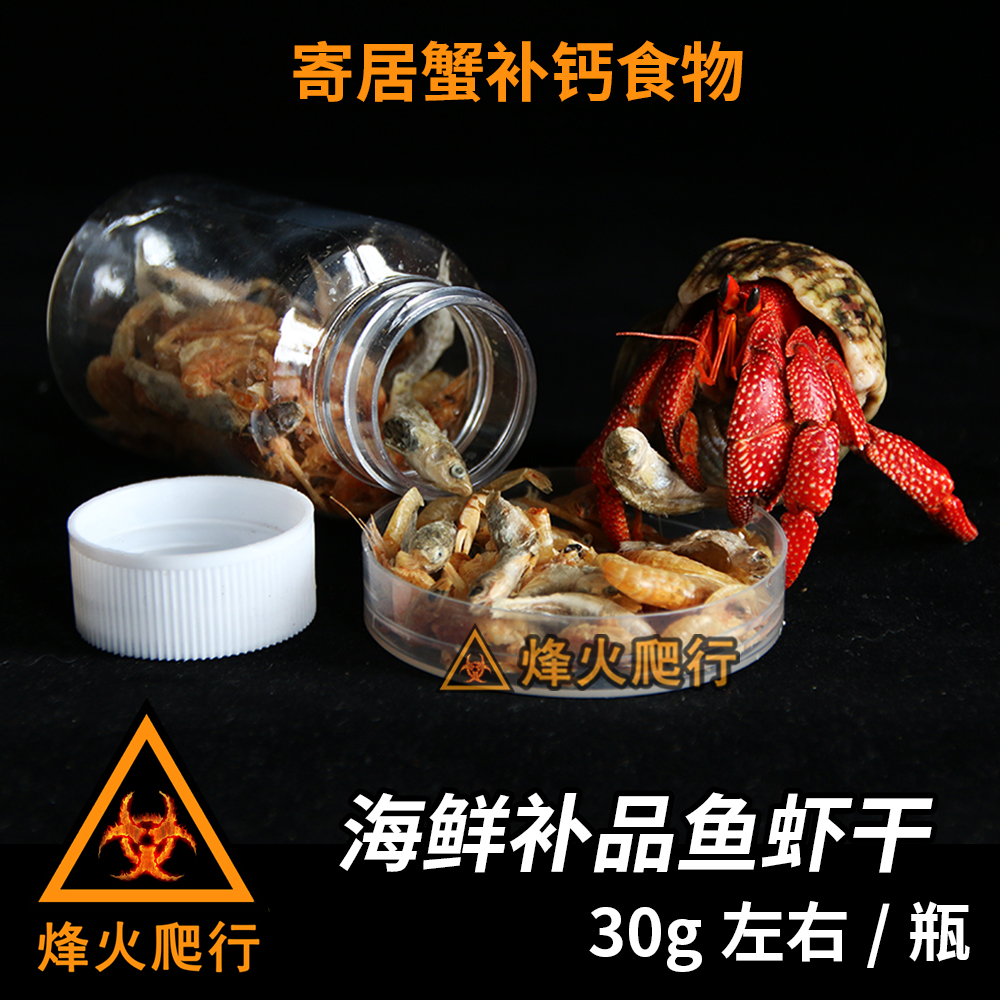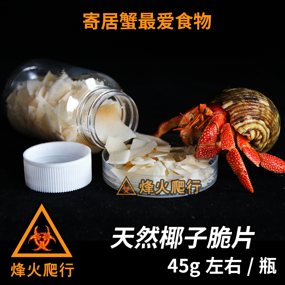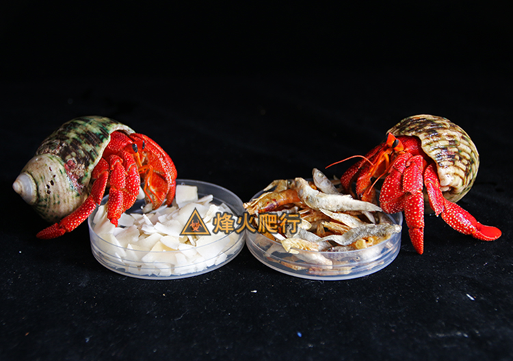 45g of natural dried coconut crisps (recommended staple food), seafood tonic, 30g of dried fish and shrimp (special for calcium supplement), 80g of special crab food for hermit crab (to help hair color), one natural calcium supplement starfish (