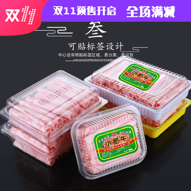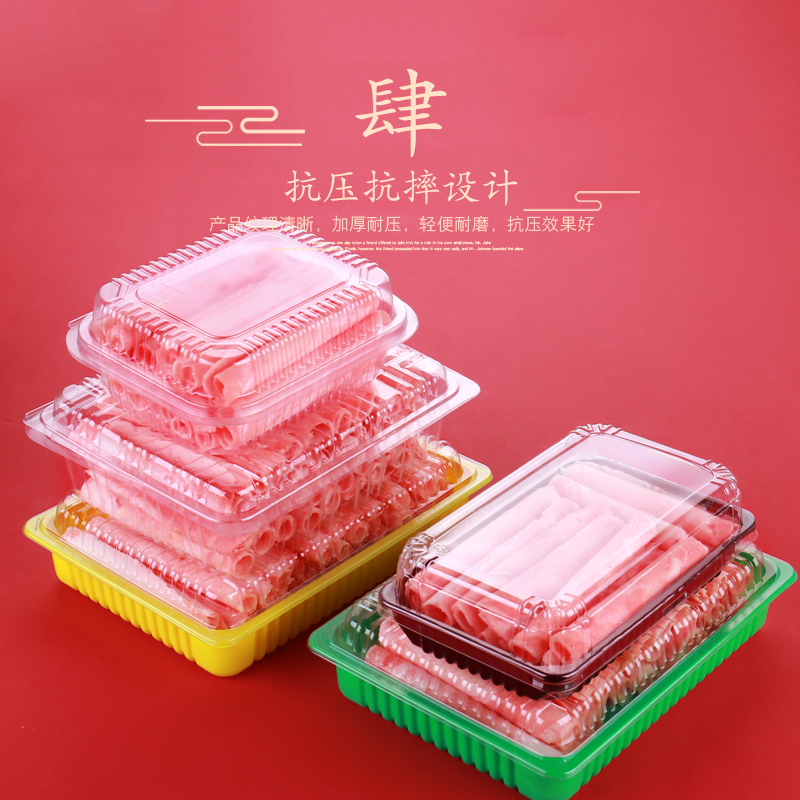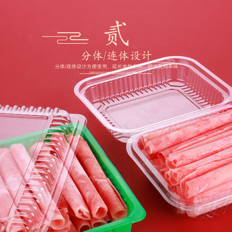 A pound of mutton slices plastic packaging box disposable transparent fat beef roll brush pot meat slice box 500g