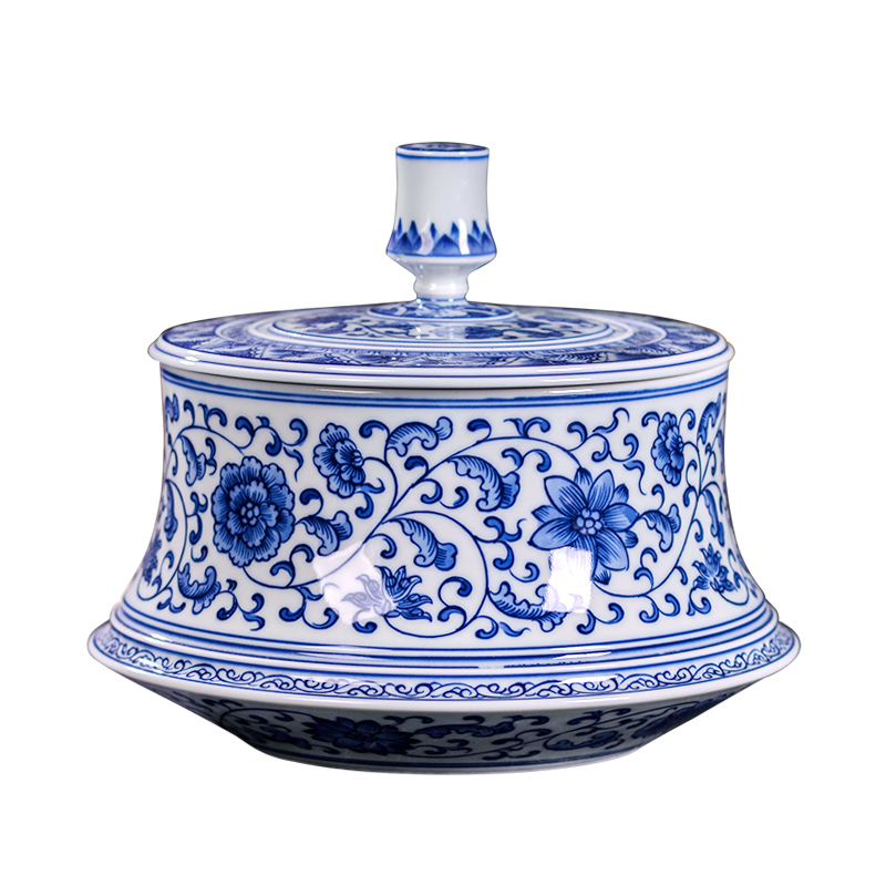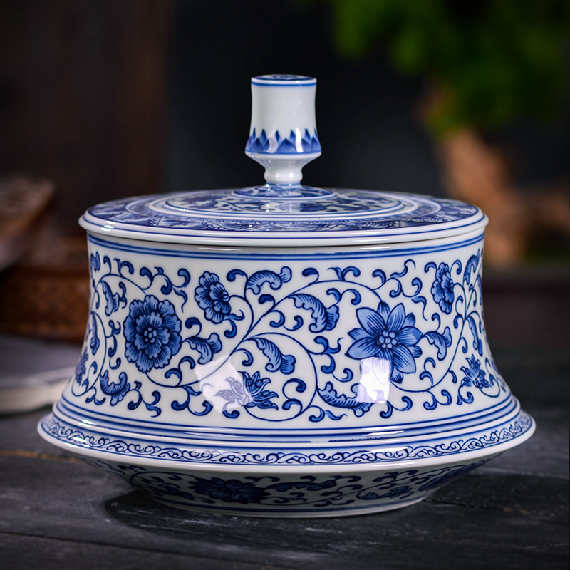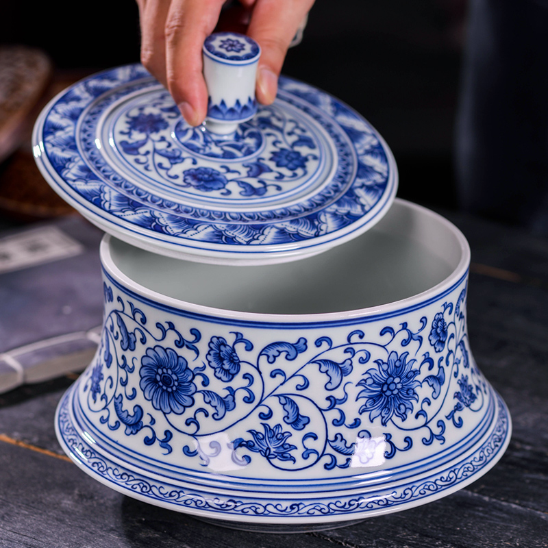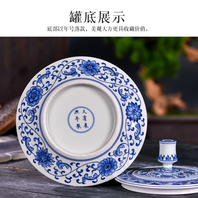 Jingdezhen Ceramic Blue Porcelain Large Tea Can Household Pu-yu Tea Box with pure hand sealed cans