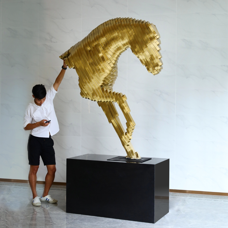 Hotel lobby Large floor-to-ceiling horse head sculpture ornaments Sales office Shopping mall hall Exhibition hall Custom decorative works of art