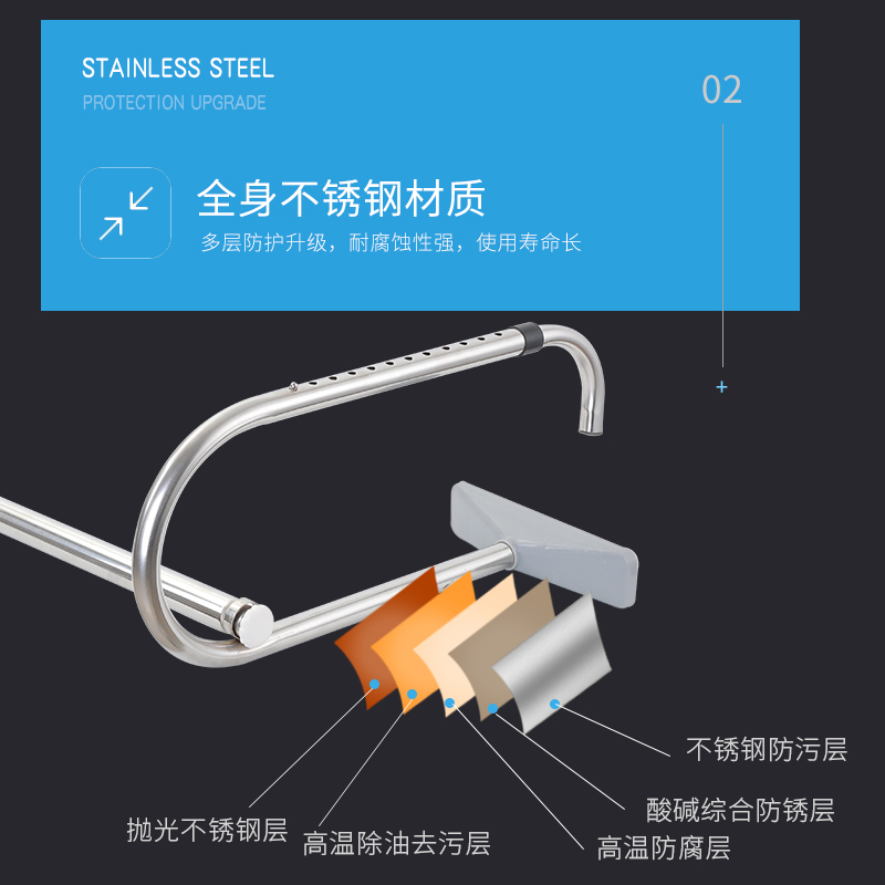 Non-perforated window telescopic drying rack Indoor window drying rod Stainless steel outdoor drying artifact cold rack