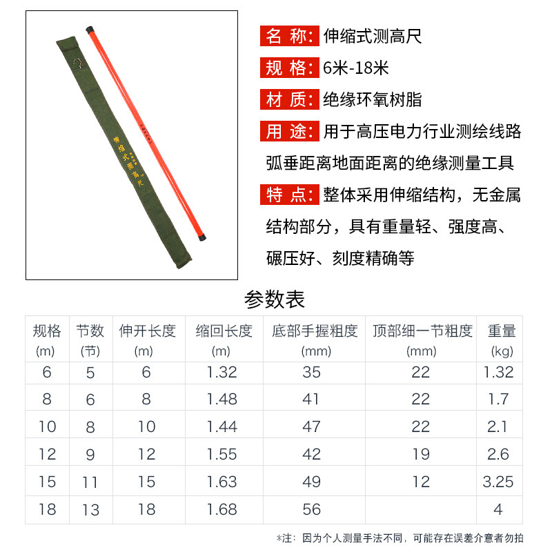 High pressure test high bar telescopic insulation test high bar epoxy power high gauge ranging measuring rod measuring scale-Taobao