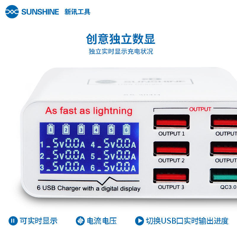 New news SS-304Q Multi-port USB charger Plugging Porous Mobile Phone Smart 5V3 5A multifunction display Quick charge