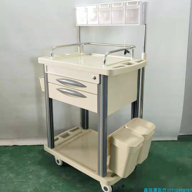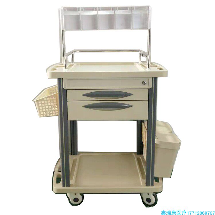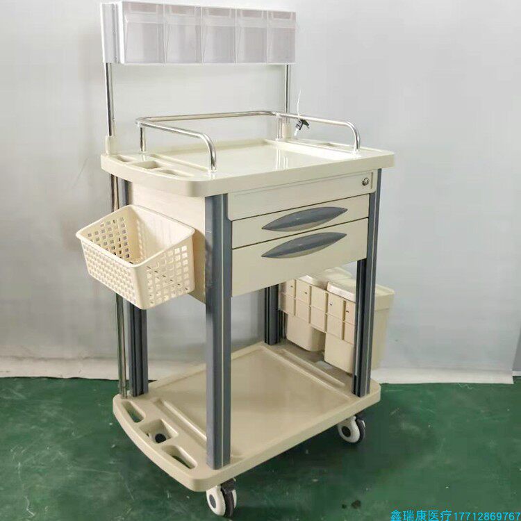 Factory direct sales abs treatment anesthesia cart anesthesiologist cart nurse injection infusion cart beige double drawer
