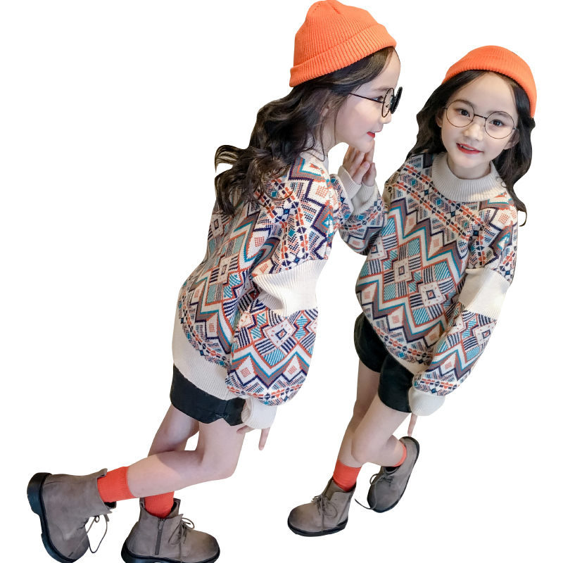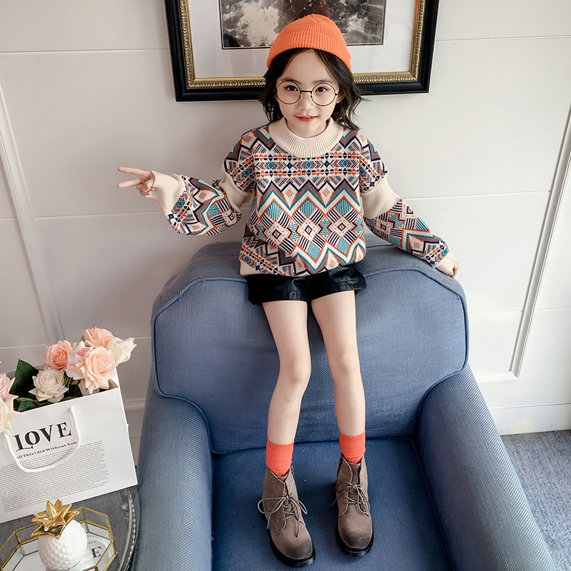 Girls Spring and Autumn Clothing Sweater 2021 new Han Edition children's gas tops in big children's net red knitted tide
