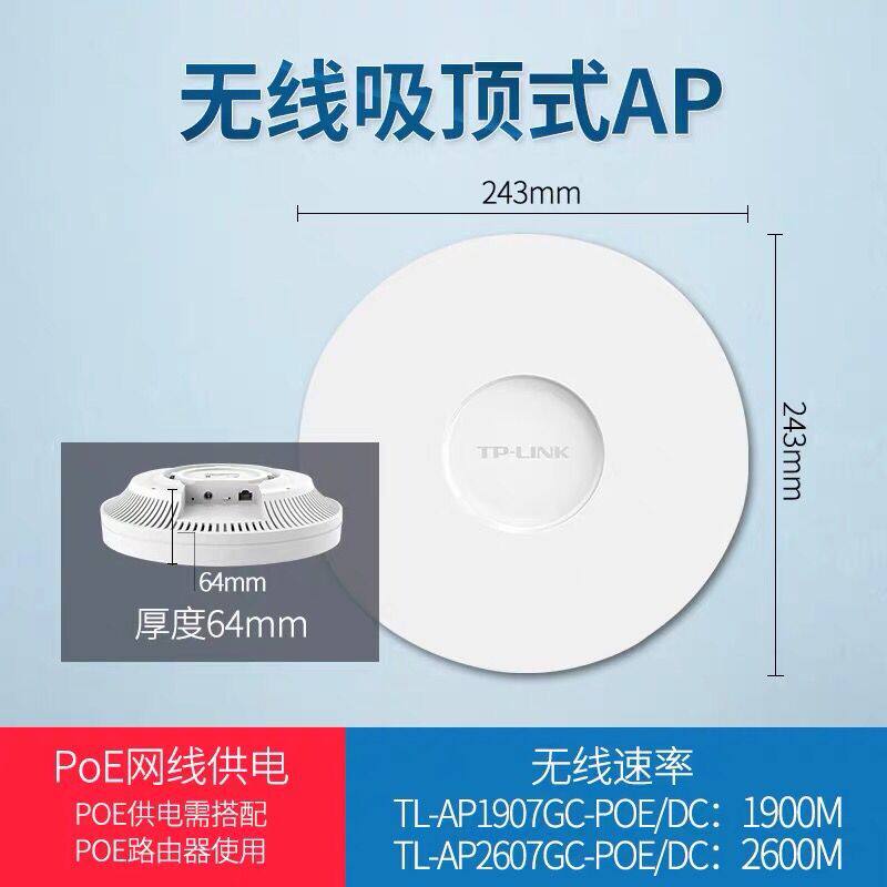 TP-LINK TL-AP1907GC-POE DC Gigabit 5G Dual-band 1900M WiFi Ceiling AP