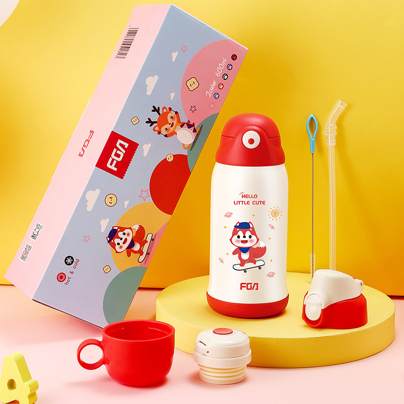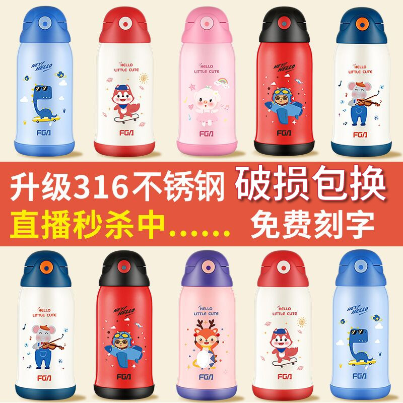 Fuguang children's thermos cup for men and women with straw kindergarten elementary school students 316 stainless steel diagonal span water bottle bag cup